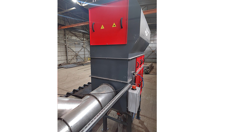 После дробеметной очистки листового проката на заготовке остается большое количество дроби. Для очистки листовой стали на выходе из дробеметной камеры установлен щеточно-шнековый узел удаления дроби. Дробь сметается с листа и попадает в общую систему рециркуляции. Поднимаемая щетками пыль подхватывается вентиляторами обдува и затягивается системой ФВУ. Клеть с щёткой с пульта управления может остаться в парковочном положении дабы не препятствовать чистке заготовок иных форм и размеров.